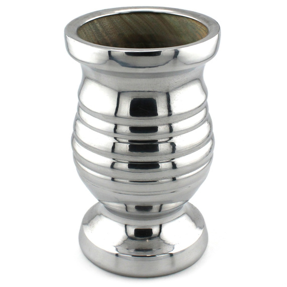 • Matero wykonane z przyjemnie pachnącego drewna o kolorze brązowo-zielonym. Naczynko jest w całości okute w metal. Pojemność od ok. 180 ml do ok. 220 ml.