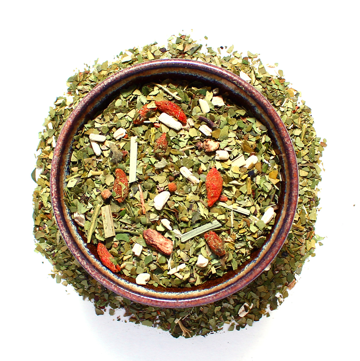 • Składniki: herbata yerba mate (Ilex paraguariensis) 88% - kraj pochodzenia: Brazylia, mięta, liść czarnej porzeczki, trawa cytrynowa, liść miłorzębu japońskiego, jagody goji, catuaba, guarana sproszkowana, naturalny aromat.