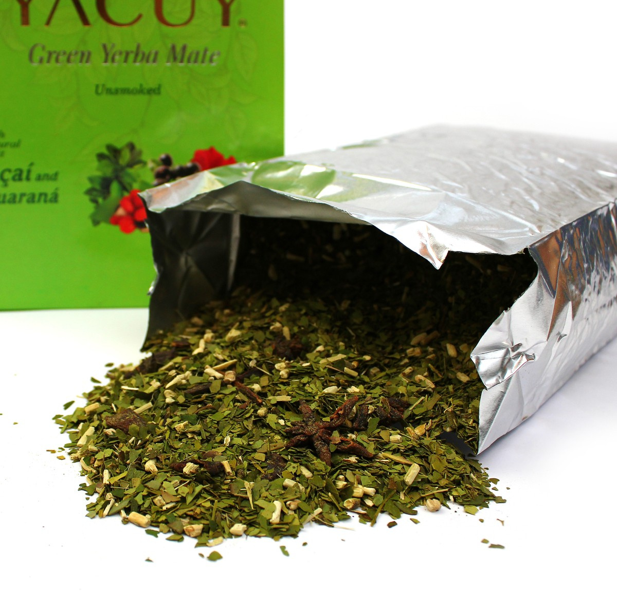 • Ingredients: yerba mate (Ilex Paraguariensis) 93%, ground guarana 2%, anise, acai, hibiscus, mint, stevia.