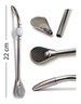 • Bombilla o długości 22 cm wykonana w 100% ze stali INOX. Zdobiona dwoma pierścieniami chłodzącymi i białym kamieniem. Do bombilli dołączona jest szczoteczka, a całość zapakowana jest w białe tekturowe pudełko.