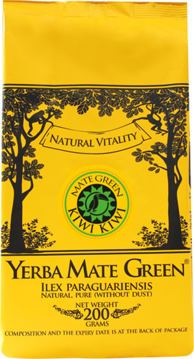• Składniki: herbata yerba mate (Ilex paraguariensis) 93% - kraj pochodzenia: Brazylia, owoc kiwi 3%, trawa cytrynowa, morwa owoc, kwiat rumianku, mięta, żurawina owoc, naturalny aromat.