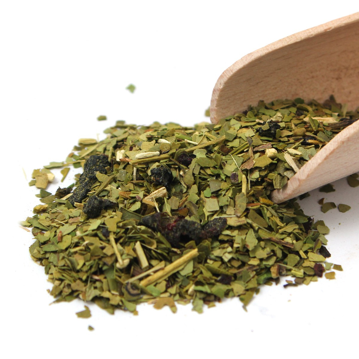 • Składniki: herbata yerba mate (Ilex Paraguariensis) 95,5% - kraj pochodzenia: Brazylia, suszony owoc aronii, suszony owoc czarnego bzu, suszony owoc jagody kamczackiej, naturalny aromat.