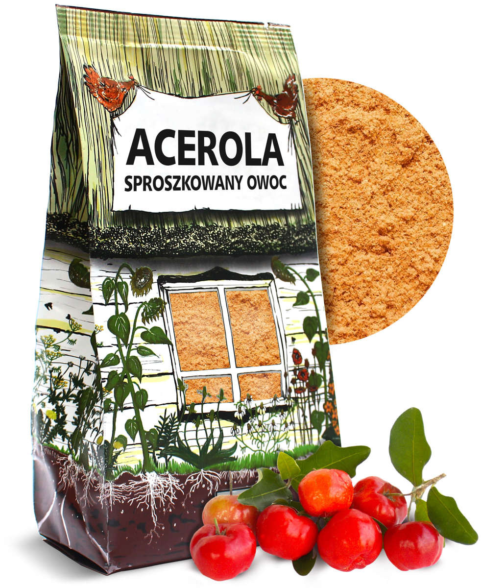 • Składniki: sproszkowany owoc aceroli (Malpighia glabra L.) - 100%. Suplement diety.
