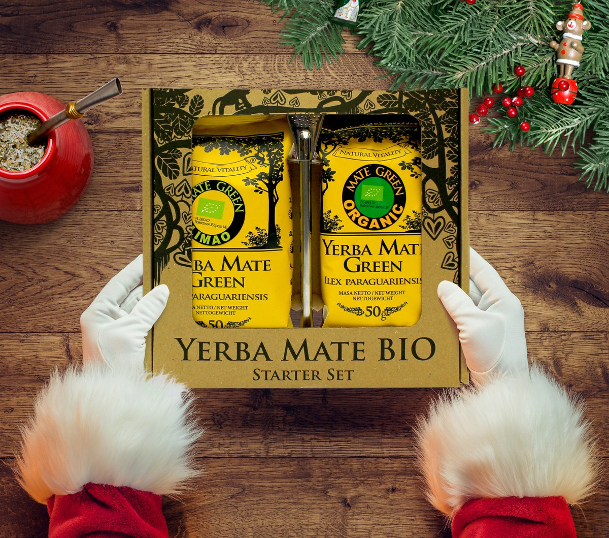 Zestaw Yerba Mate Bio Starter Set Organiczny zapakowany w kartonowe pudełko