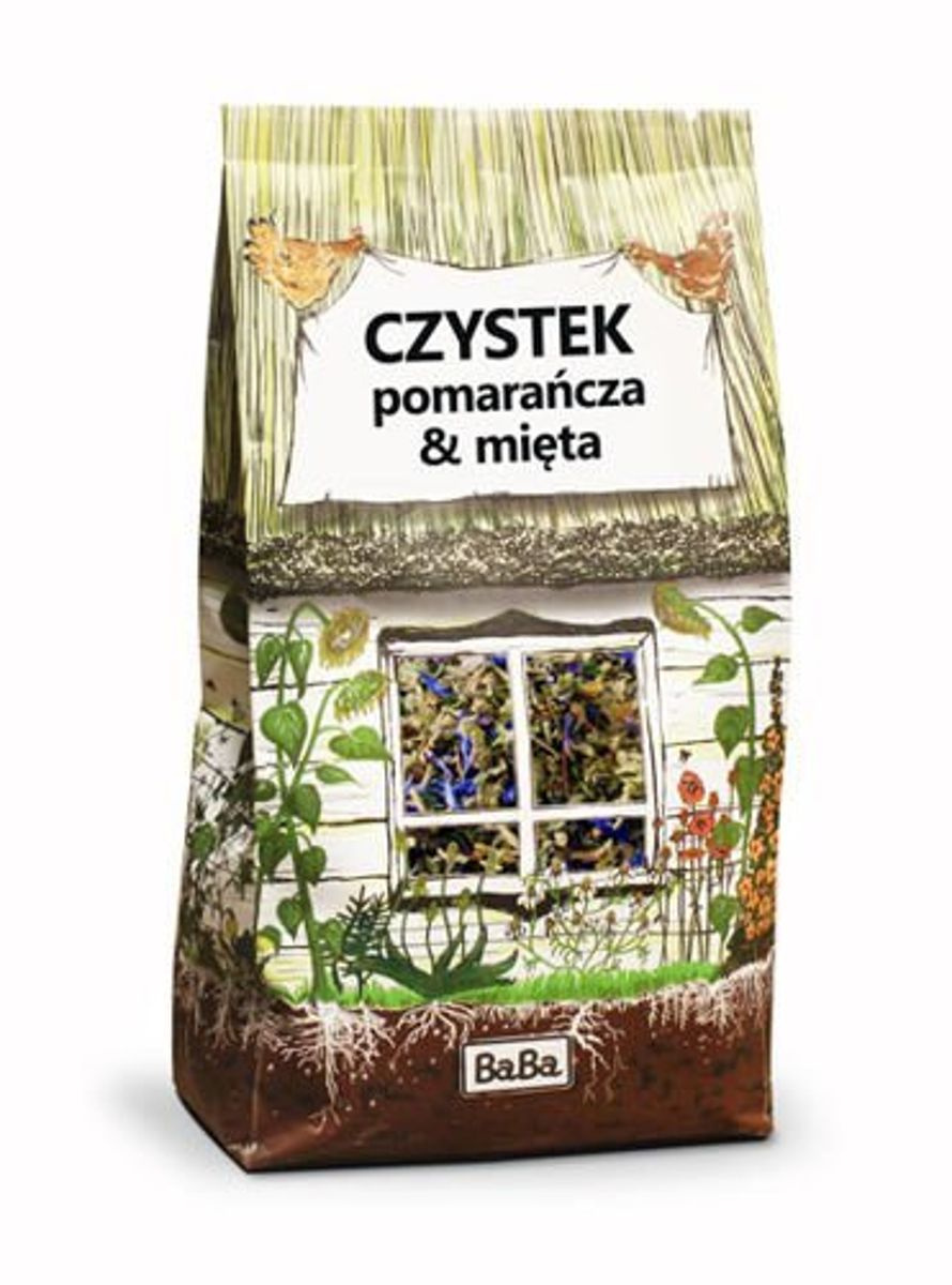 • Składniki: czystek 92%, skórka pomarańczy 2%, bławatek, melisa, mięta 2%. Suplement diety.