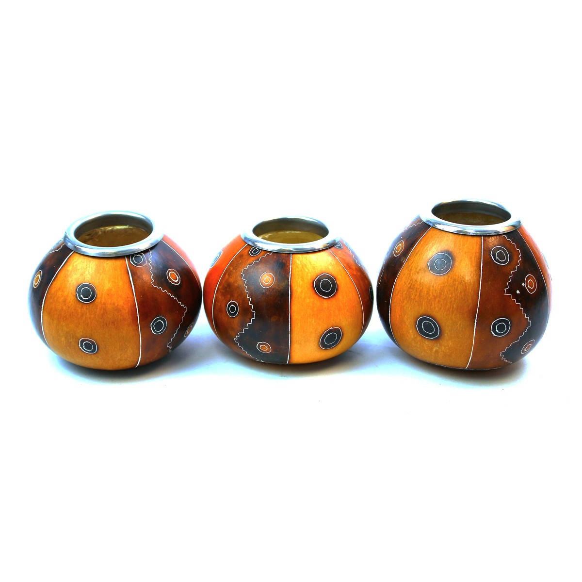 • Tykwa o najgrubszych ściankach, wykończona mocną i stalową virollą, zdobiona fantazyjnymi, żłobionymi wzorami wykonanymi ręcznie w Andach. Pojemność od 180 do 280 ml. Rarytas!